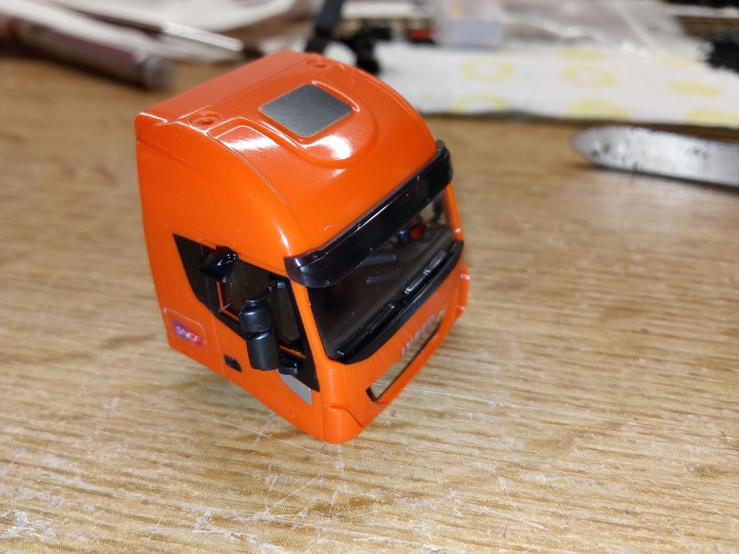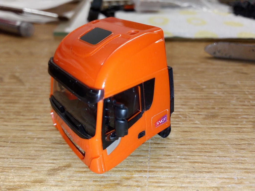 après avoir effacé les anciens marquages avec du décapant et coton tige, place à la pose des logos SNCF et des rétroviseurs
