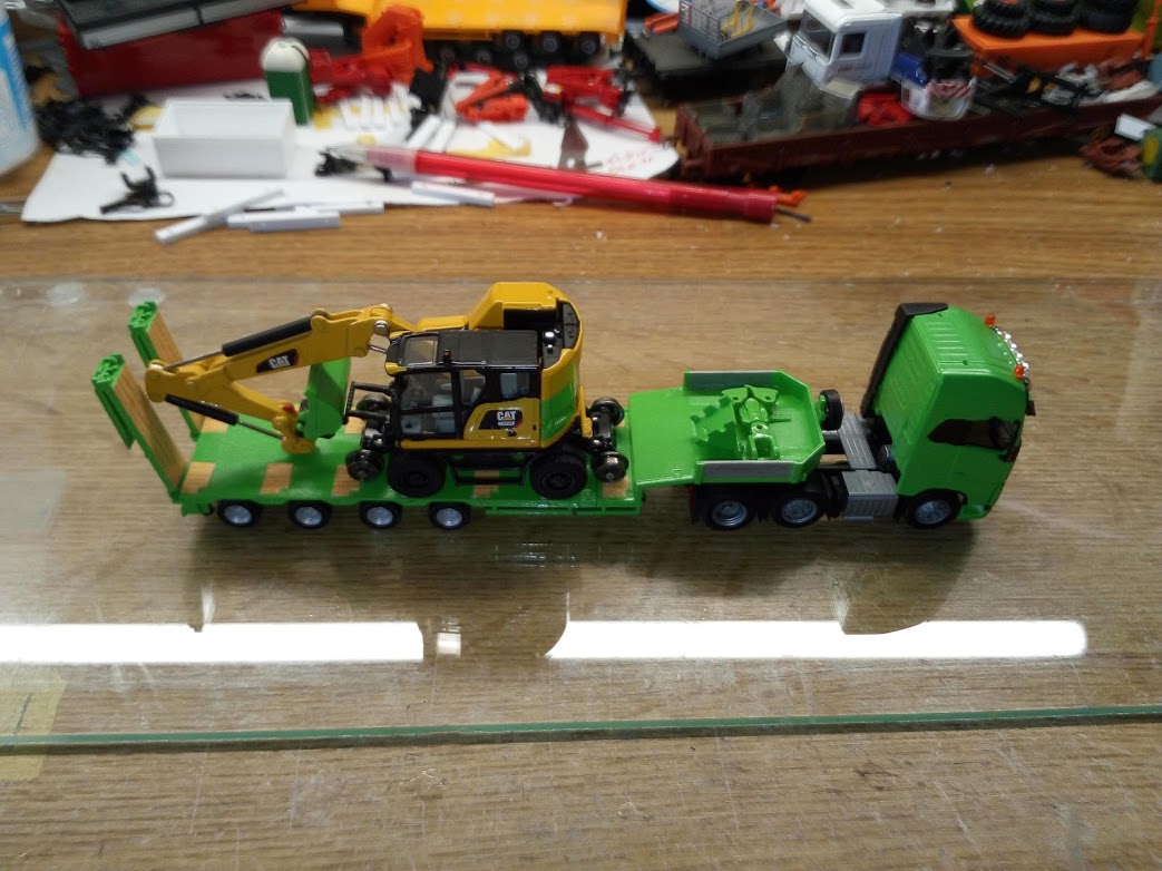 Voici l'ensemble routier avec une pelle cat en chargement le tout au couleur de l'entreprise Beolet