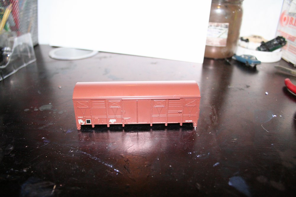 voici mon wagon graisseur de caténaires en cours de construction.Je suis parti sur une base piko , COUVERT TYPE Gs 4