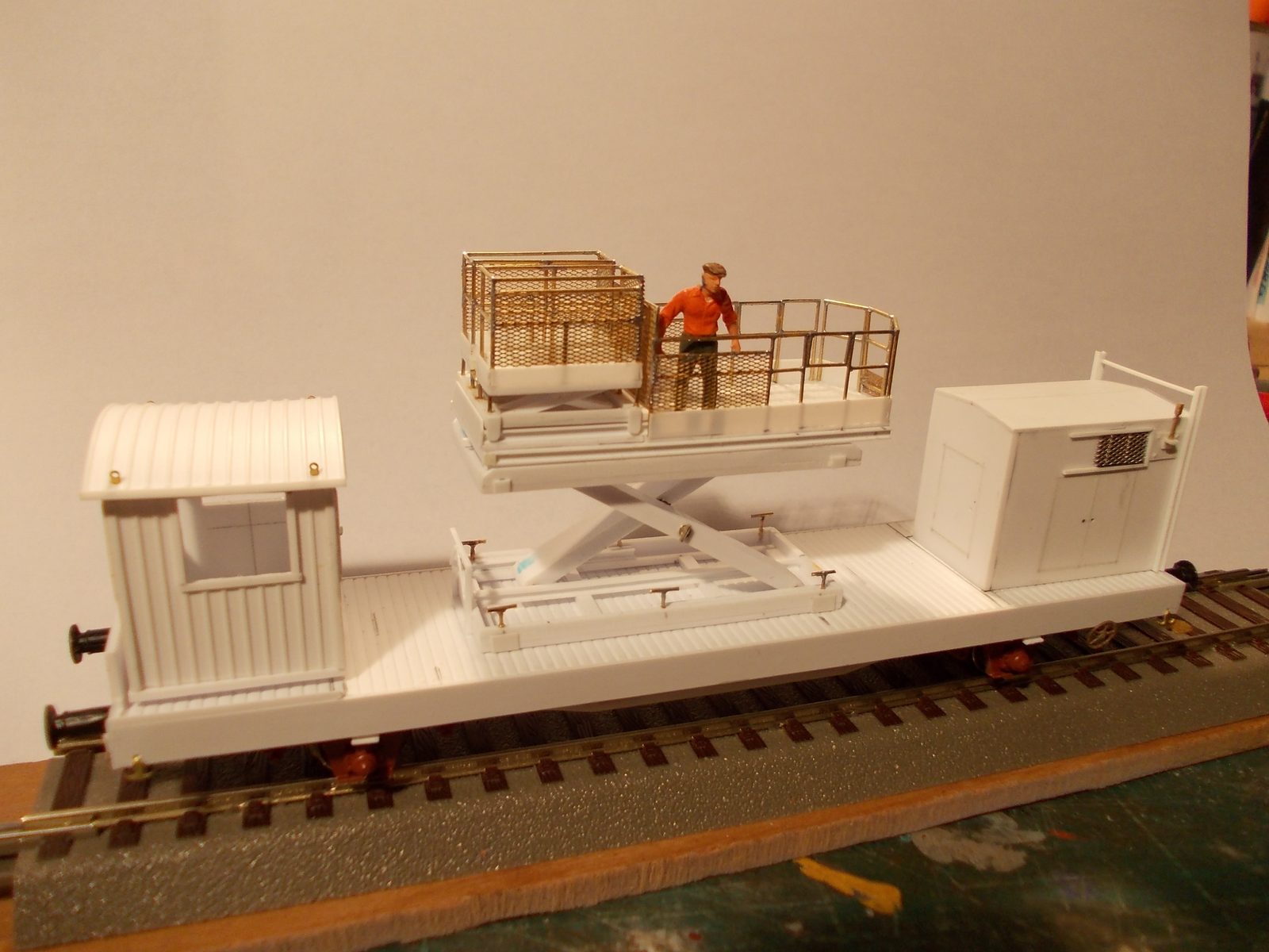 Voici ma réalisation en cours,un wagon APMC,la nacelle est en cours de finition,car comme je la veux mobile :reflexion: ,cela prend un peu plus de temps,alors dans un premier temps voici le wagon de base avec la cabine et le groupe