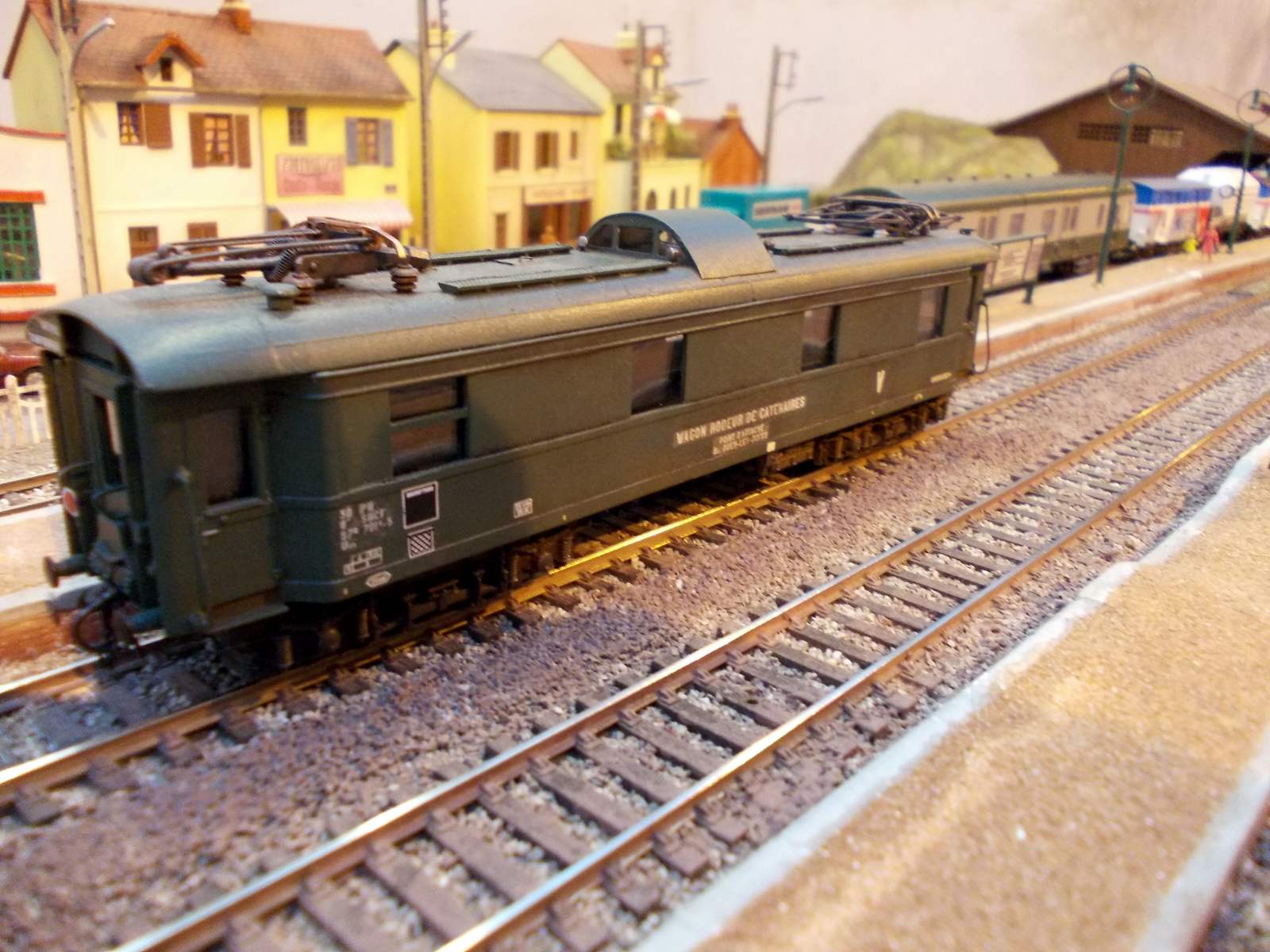 Voici un wagon rodeur de caténaires réalisé sur une base d'un fourgon ex DR Jouef raccourci.Qu'elle était son utilisation dans la réalité ? Si quelqu'un à des infos ! L'origine de ce wagon était un ancien fourgon chaudière.