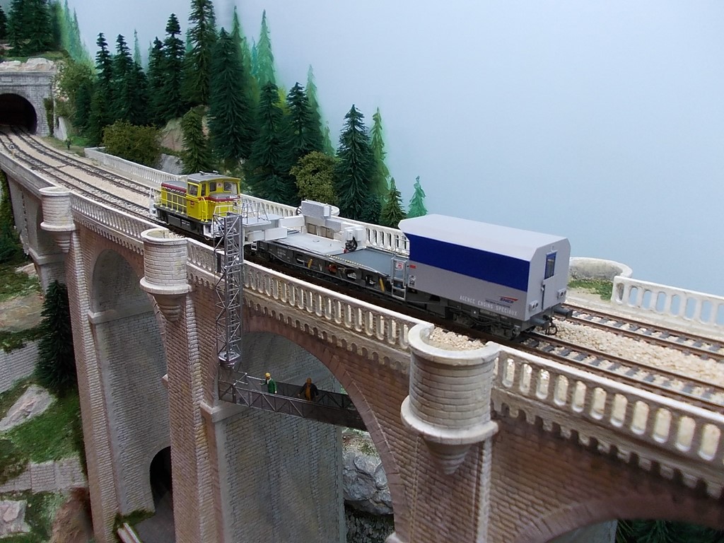 Ayant trouvé ,à Rail Expo, un viaduc magnifique et avec l'amabilité du club ATV.37, j'ai pu faire quelques photos de la PF7 en position de travail ;)