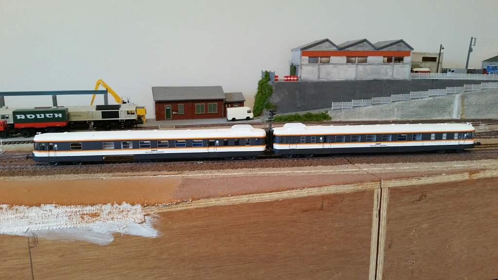 Je suis parti du transkit de chez Apocopa qu'il a fallut modifier un peu de droite et de gauche et bien ebavurer mais super à travailler. Les châssis; bogies proviennent des remorques de RGP Roco et pour le bogie moteur j'ai opté pour celui d'un ABJ Electrotren qui avait le même empattement. Le tout acheté chez détailstrainsservices.com.