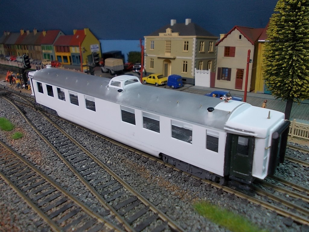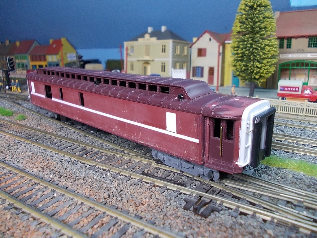 Commençons par la plus simple à réaliser. La voiture annexe N° 202, réalisée sur une base de voiture postale de 21,60 m Jouef avec un rallongement aux extrémités et une légère modification aux niveau des vitrages.