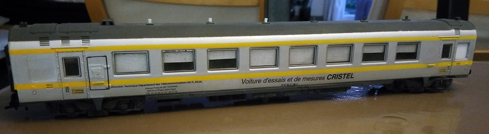 Voici une voiture de contrôle des installation radio GSM réalisée par Christian Vallée sur base Jouef, avec vitrages Apocopa : CRISTEL.