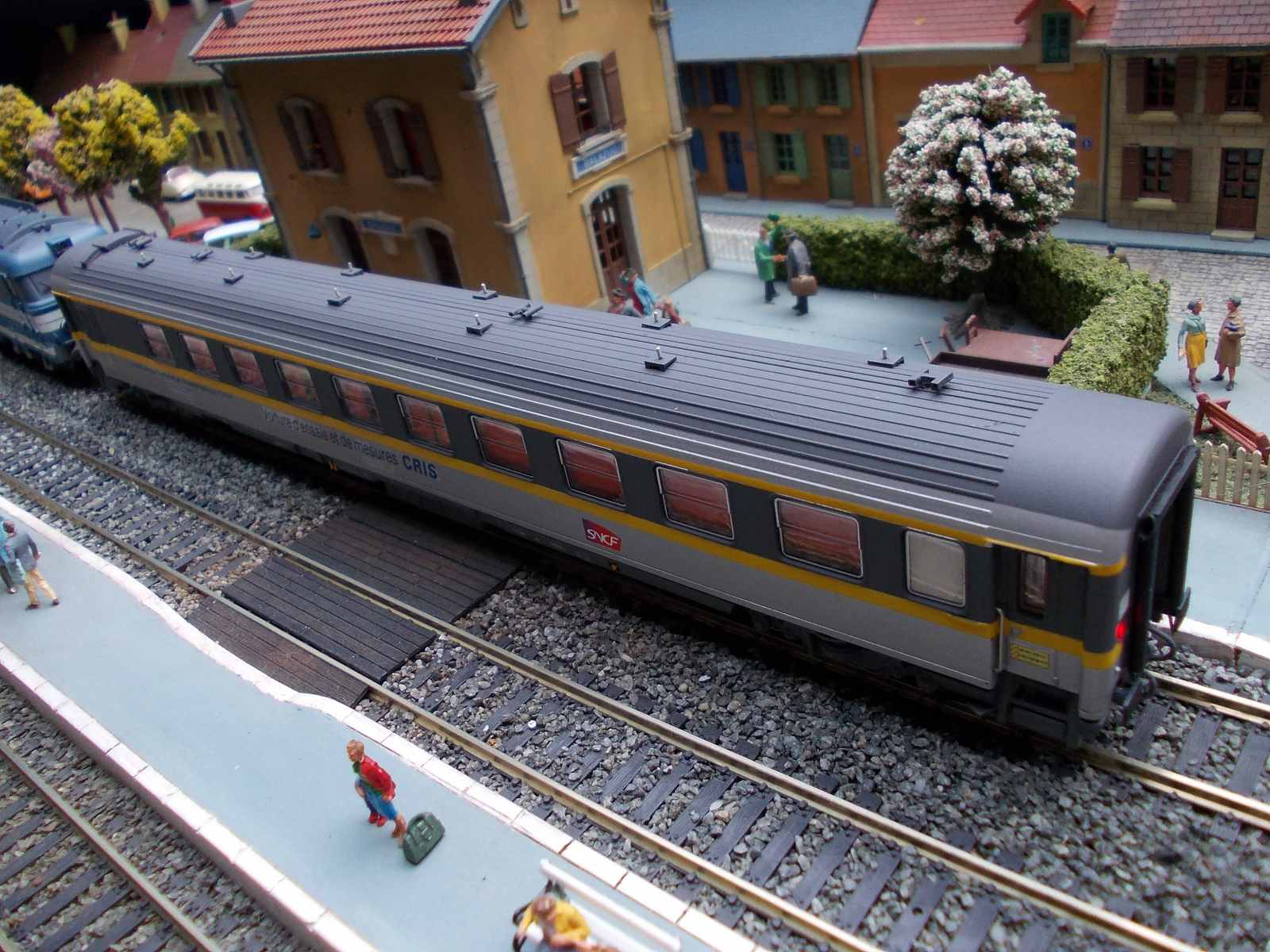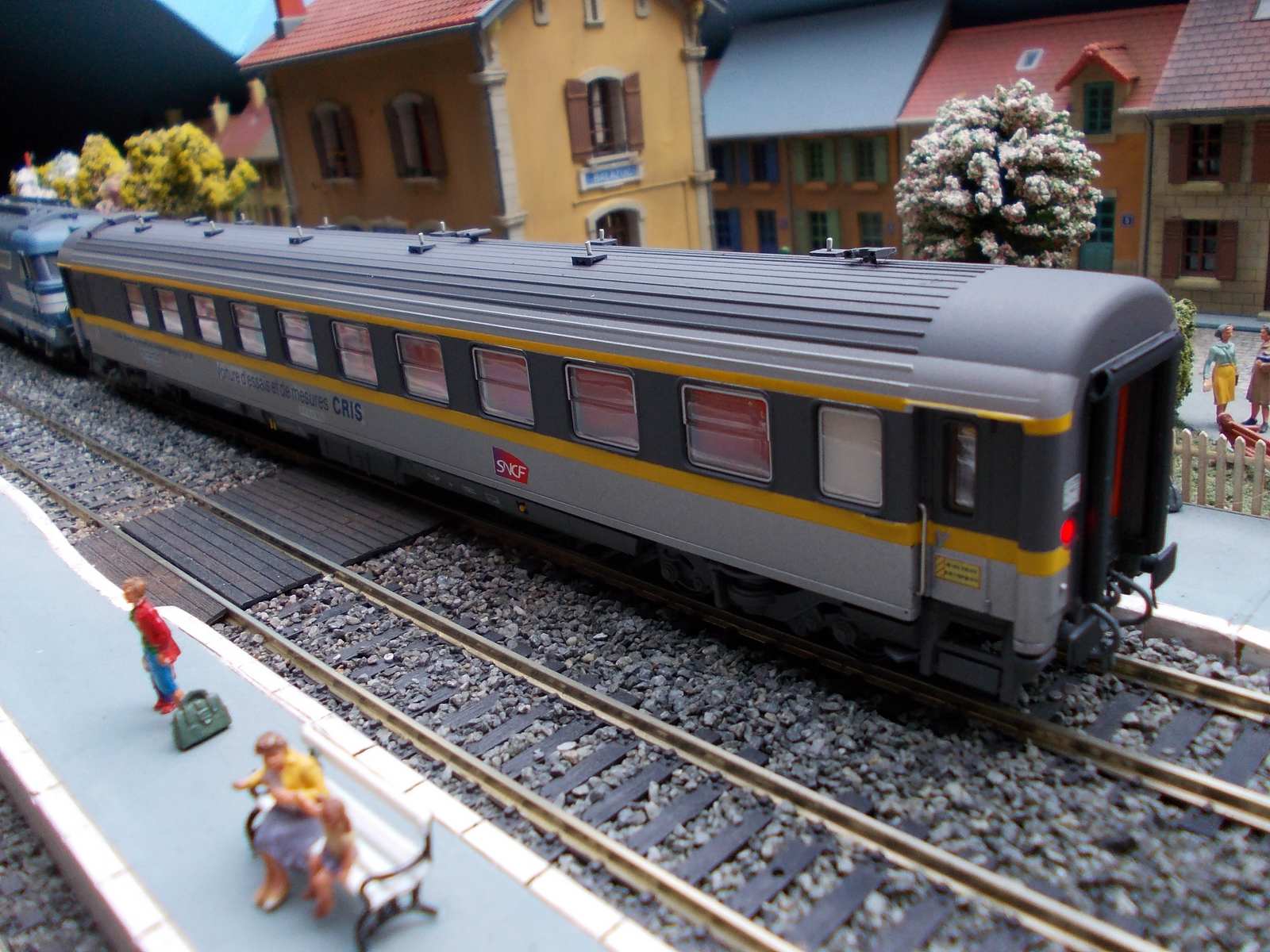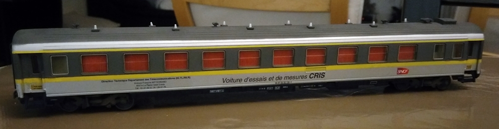 Dans la même livrée que Lucie et Véronique,voici maintenant la voiture de mesures CRIS,réalisée sur une base de voiture corail nuit AcBC ux de Piko.