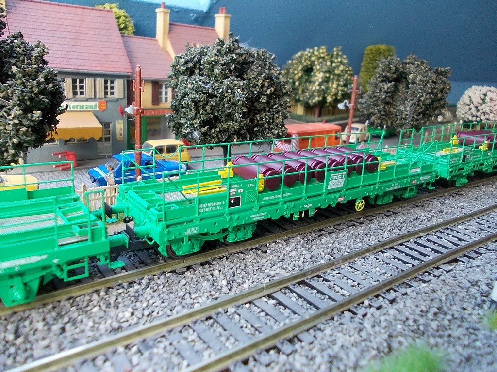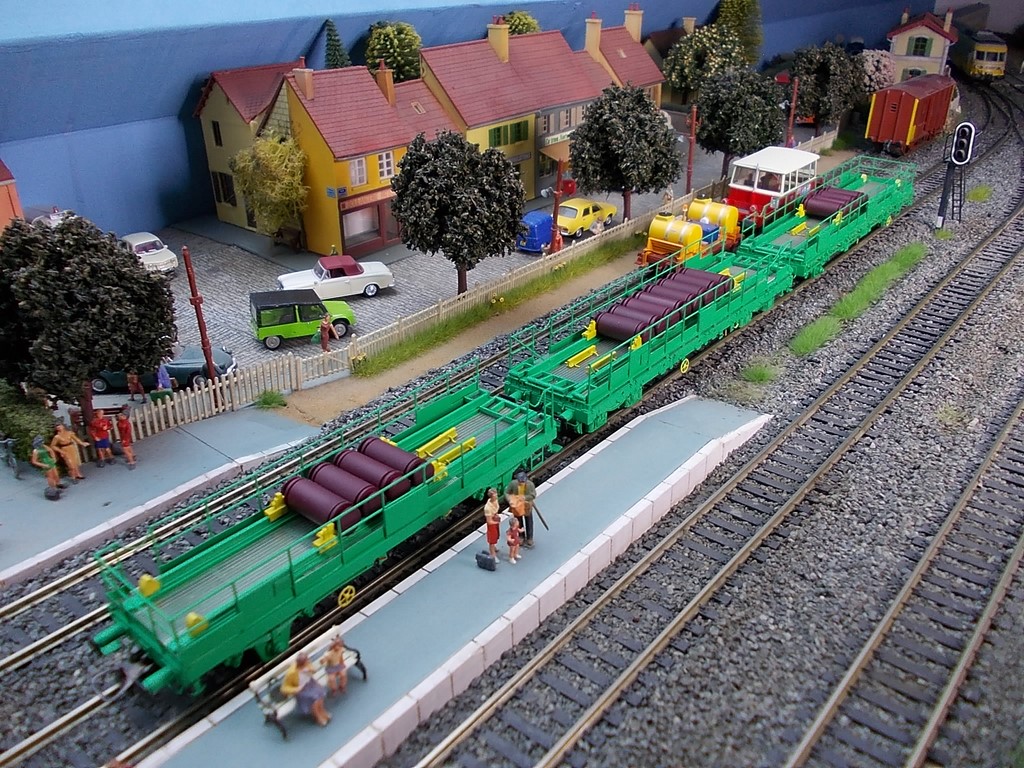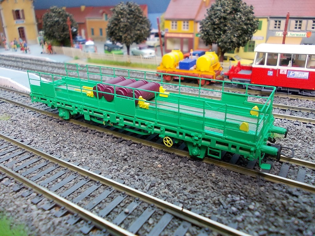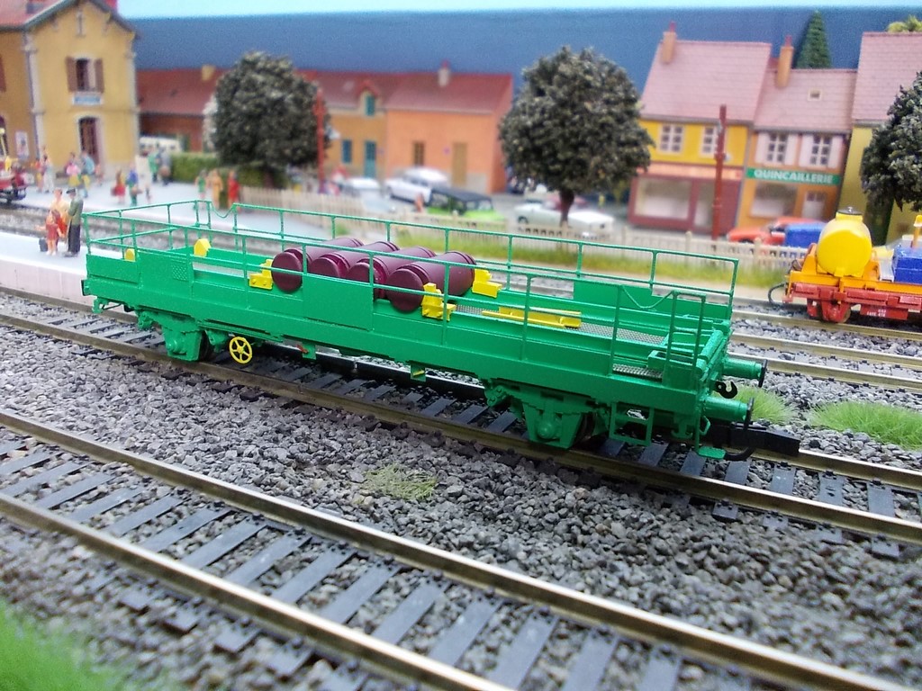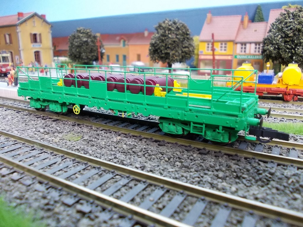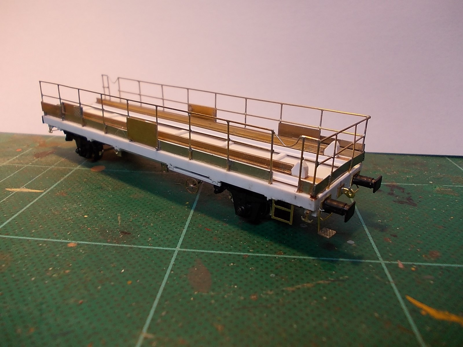 Voici une rame de wagons indissociables à tarer les bascules en cours de construction ,il en existe plusieurs,celle reproduite sera celle du dépôt de Longueau.La construction est intégrale sauf le Remms Oskar.Reste la mise en peinture et la pose de caillebotis Décapod ainsi que les fûts de charge.