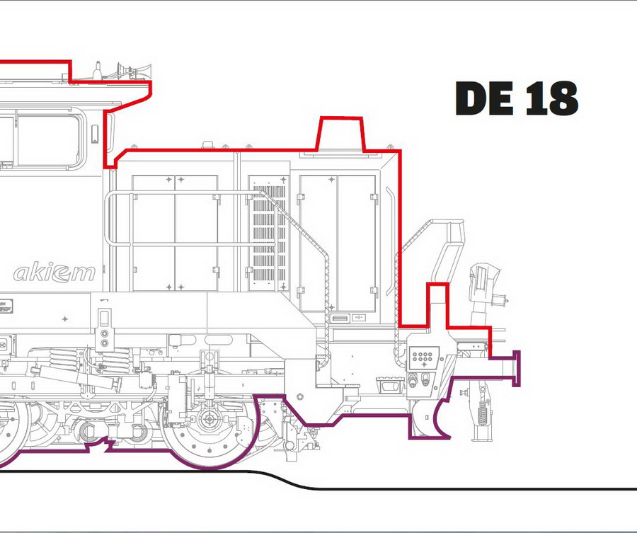 Vous voyez la premier 'Akiem-DE18'. La machine a toutes les modifications nécessaires, mais est une propriété de modèle pré-série de Vossloh. Avec deux autres machines de pré-série, elle sera utilisé pour les tests et les certifications