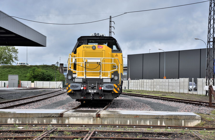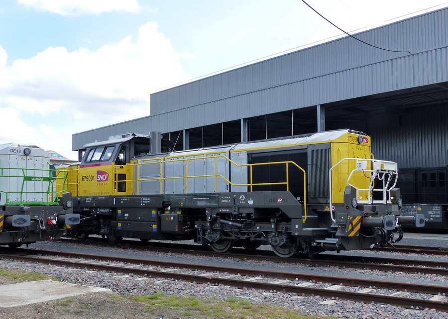 La traduction en francais Voici le 'BB 79000' - à propos des nouvelles locomotives Akiem pour la SNCF Infra Il s’agit de l’un des contrats les plus importants pour Vossloh à Kiel: le développement et la construction de la nouvelle génération de locomotives de manœuvre et de transport de marchandises pour les chemins de fer français, sur le modèle Vossloh DE18. Le 07.01.2019, une locomotive de ce type a été vue à l'extérieur, lors d'une première course.