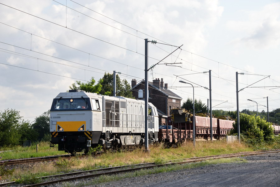 Photo de Pascal Sainson la voici de passage en tête du train de TTx n°K4 du RVB Amiens Serqueux avec la G 1206 BB 5701979 en queue en gare d'Amiens-Saint-Roch le 01-08-2019 pour la base de travaux de Longueau