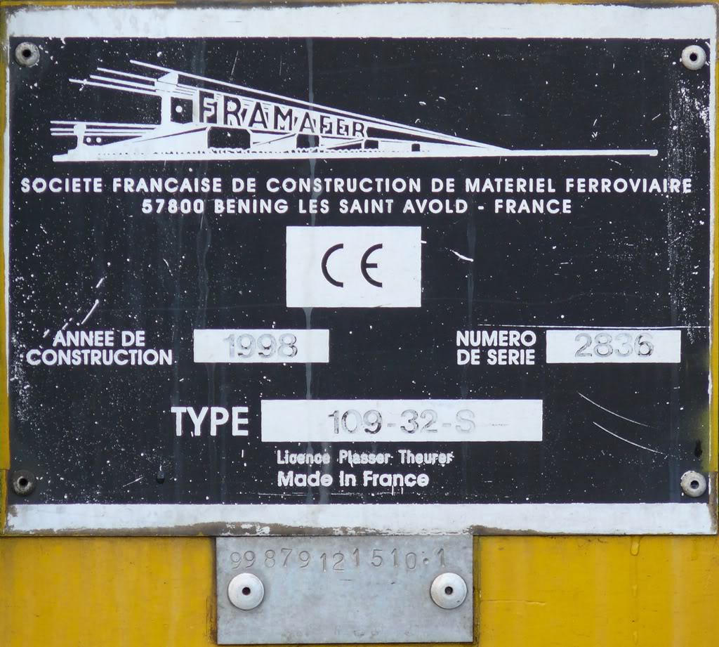 Du boulot, je ne vois pas les photos, mais je dirais la même chose que Nounours. Voir la 109 32 S - 99 87 9 121 509-3 - Colas Rail.
