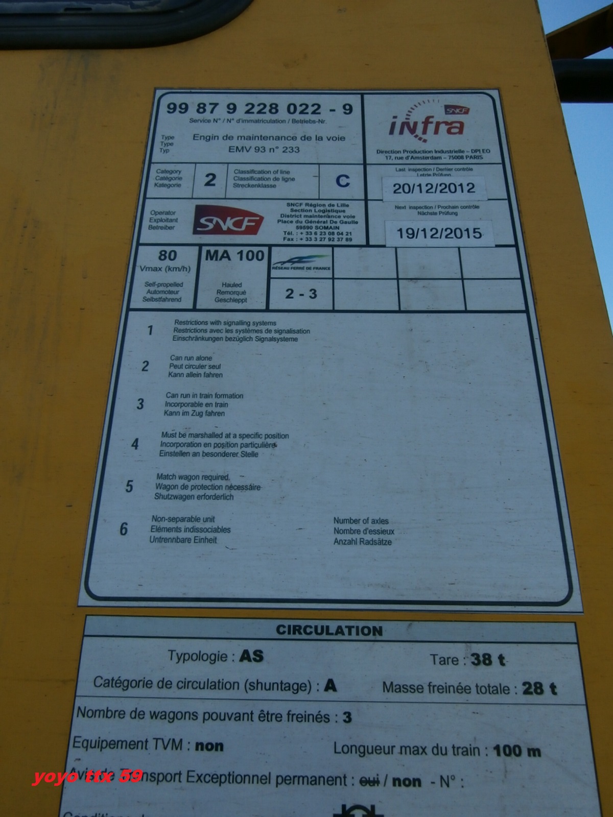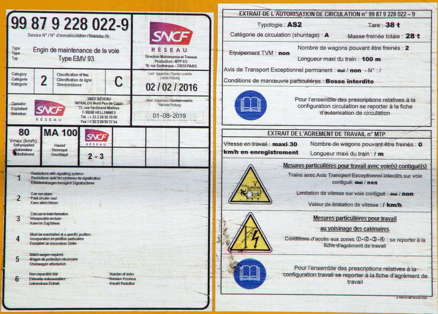 Voici une bourreuse EMV 93 SNCF 9.308, je l'ai vu à Lumes.