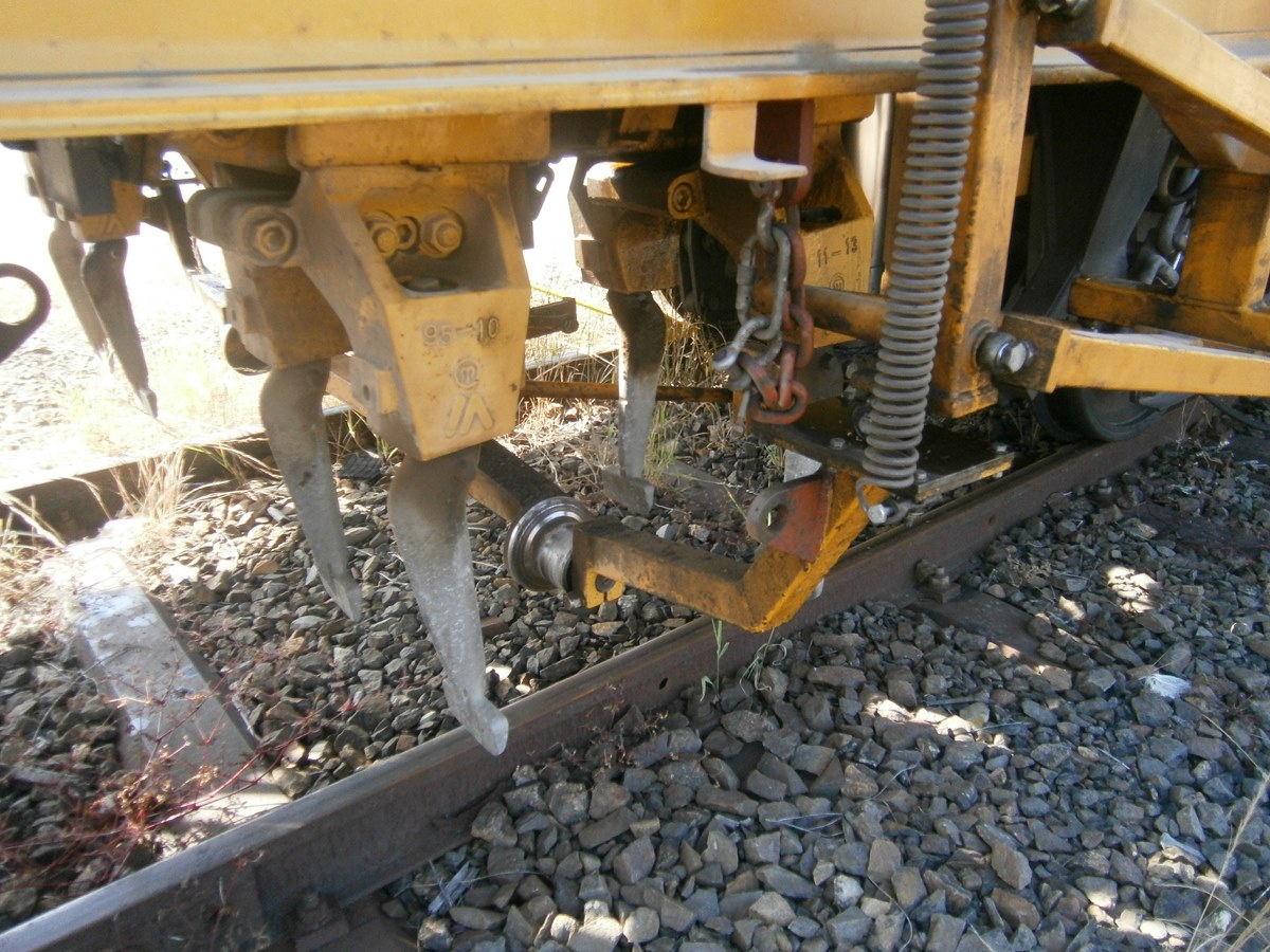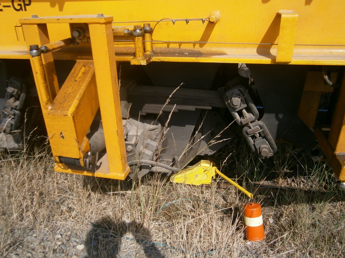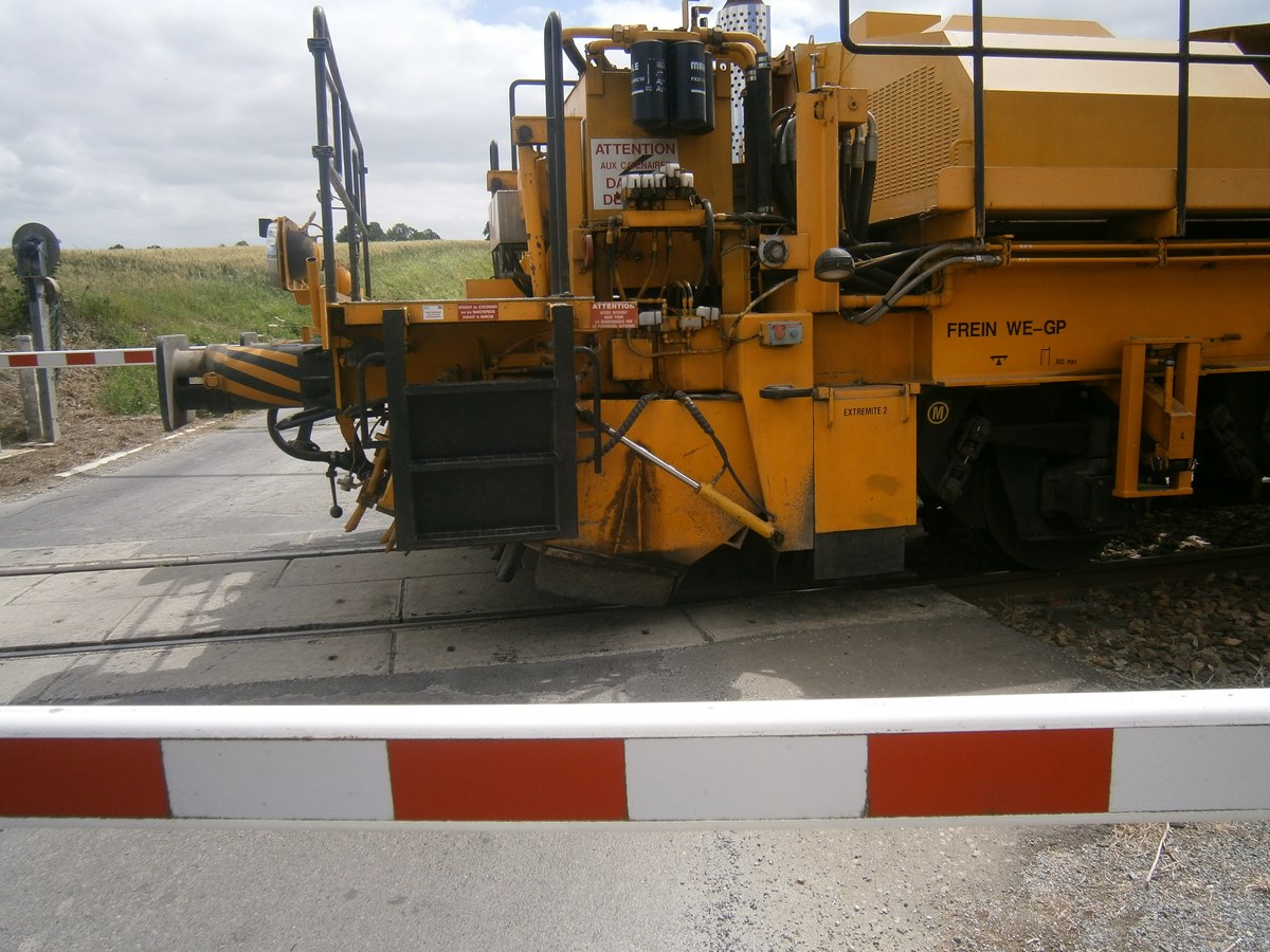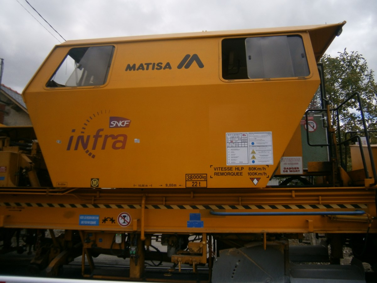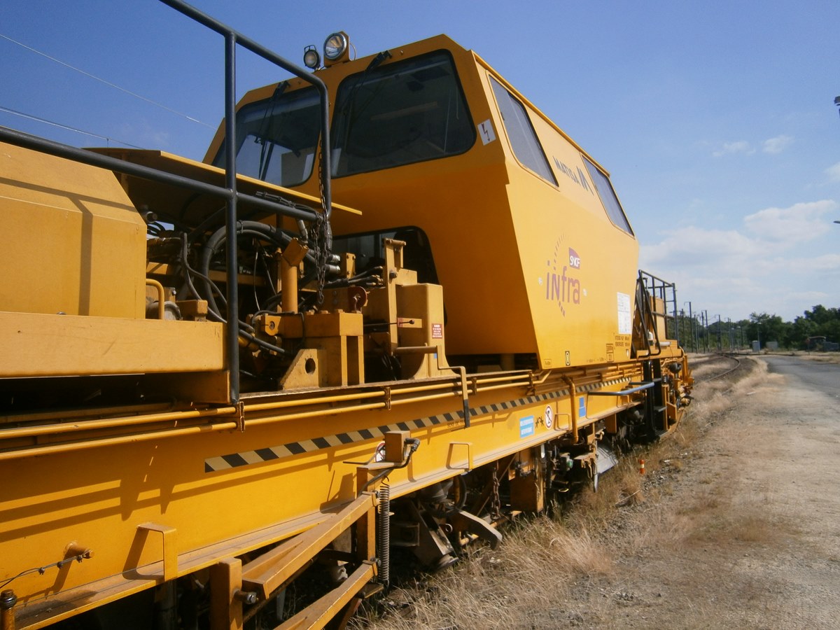 Voici une Bourreuse Combi 20 non identifiée - Point d'attache Elog Bretagne avec la voiture 80 87 979 3 305-9 Uas H55 0 SNCF-RN