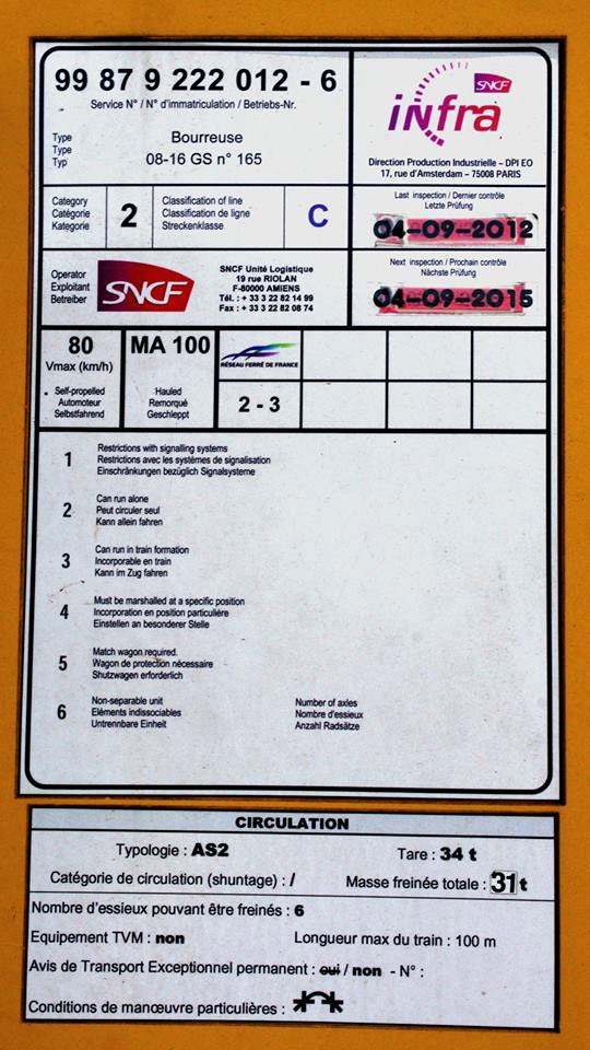 )Bourreuse Unima 08-16 GS - 99 87 9 222 012-5 SNCF-AM ex AM.7.412 Framafer n°165 de 1988