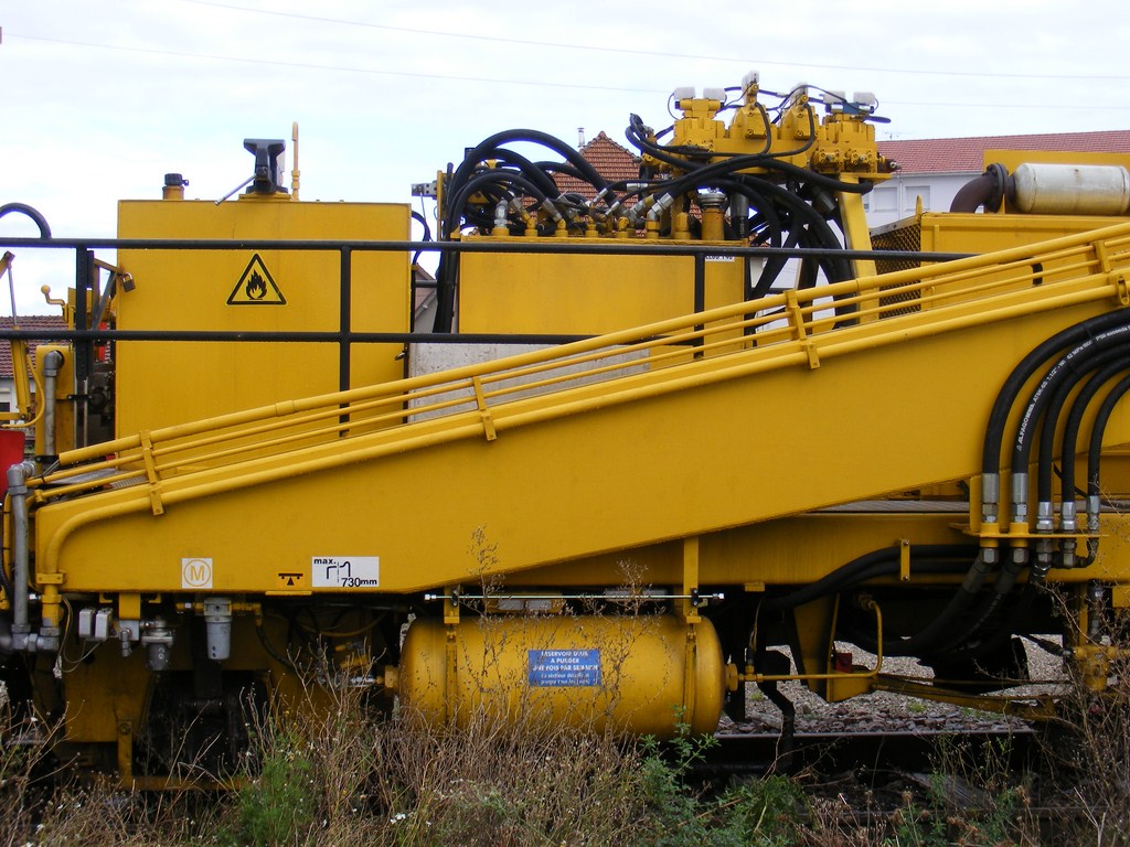 Moi aussi je pense qu'il s'agit de la même bourreuse. La 3ème ouverture semble avoir été occultée comme pour d'autres 08 16 GS (en grossissant certaines photos, on voit bien qu'une plaque a été soudée à la cabine), mais d'autres détails coïncident comme l'antenne GPS, l'absence de projecteur sur le toit, les coffres côté cabine arrière, le câblage et autre tuyauterie, ...
