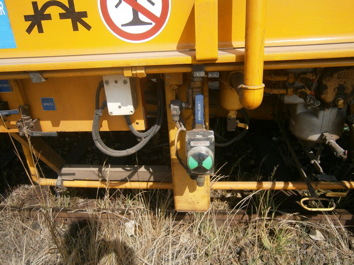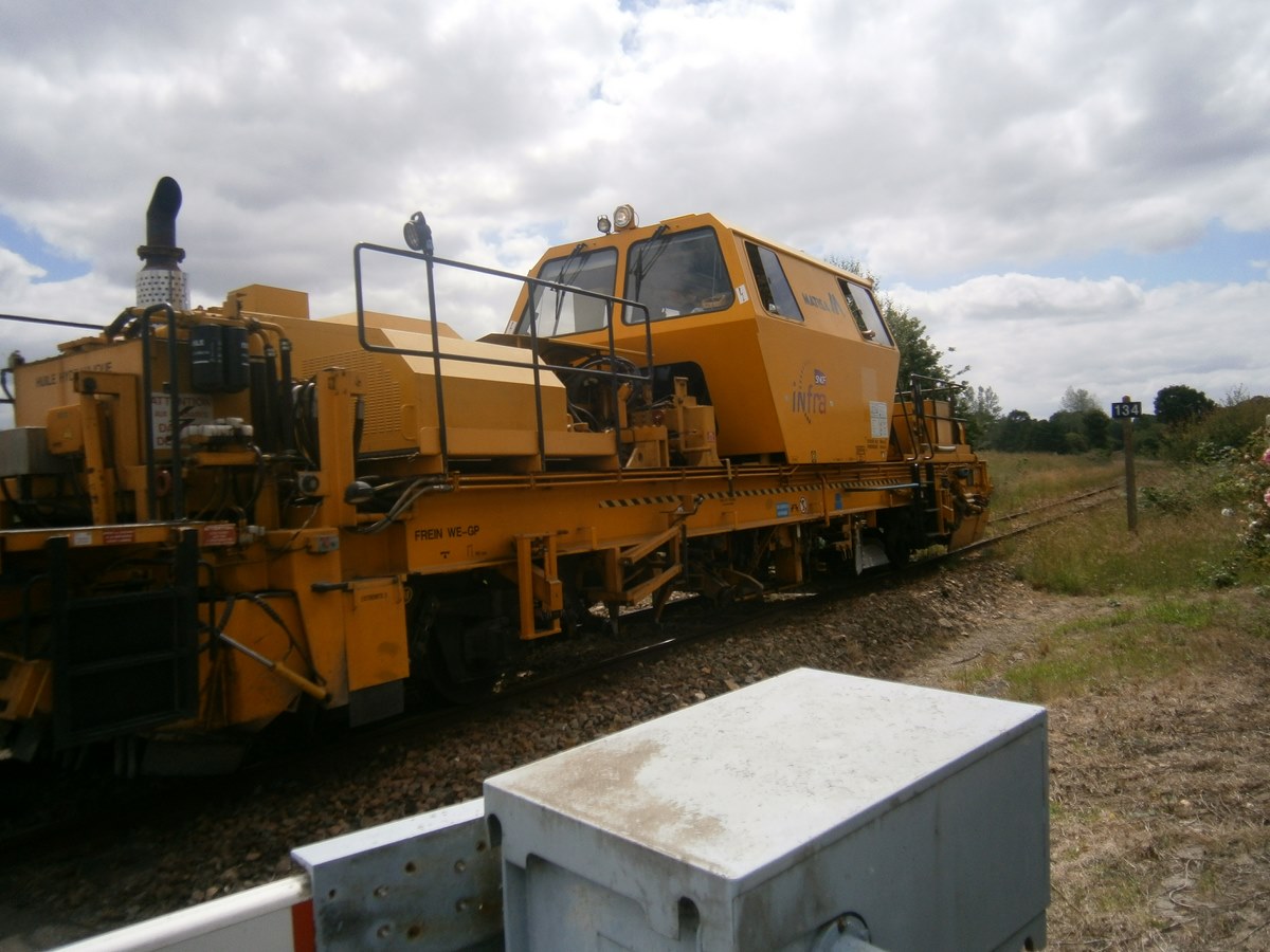 Voici une Bourreuse Combi 20 non identifiée - Point d'attache Elog Bretagne avec la voiture 80 87 979 3 305-9 Uas H55 0 SNCF-RN