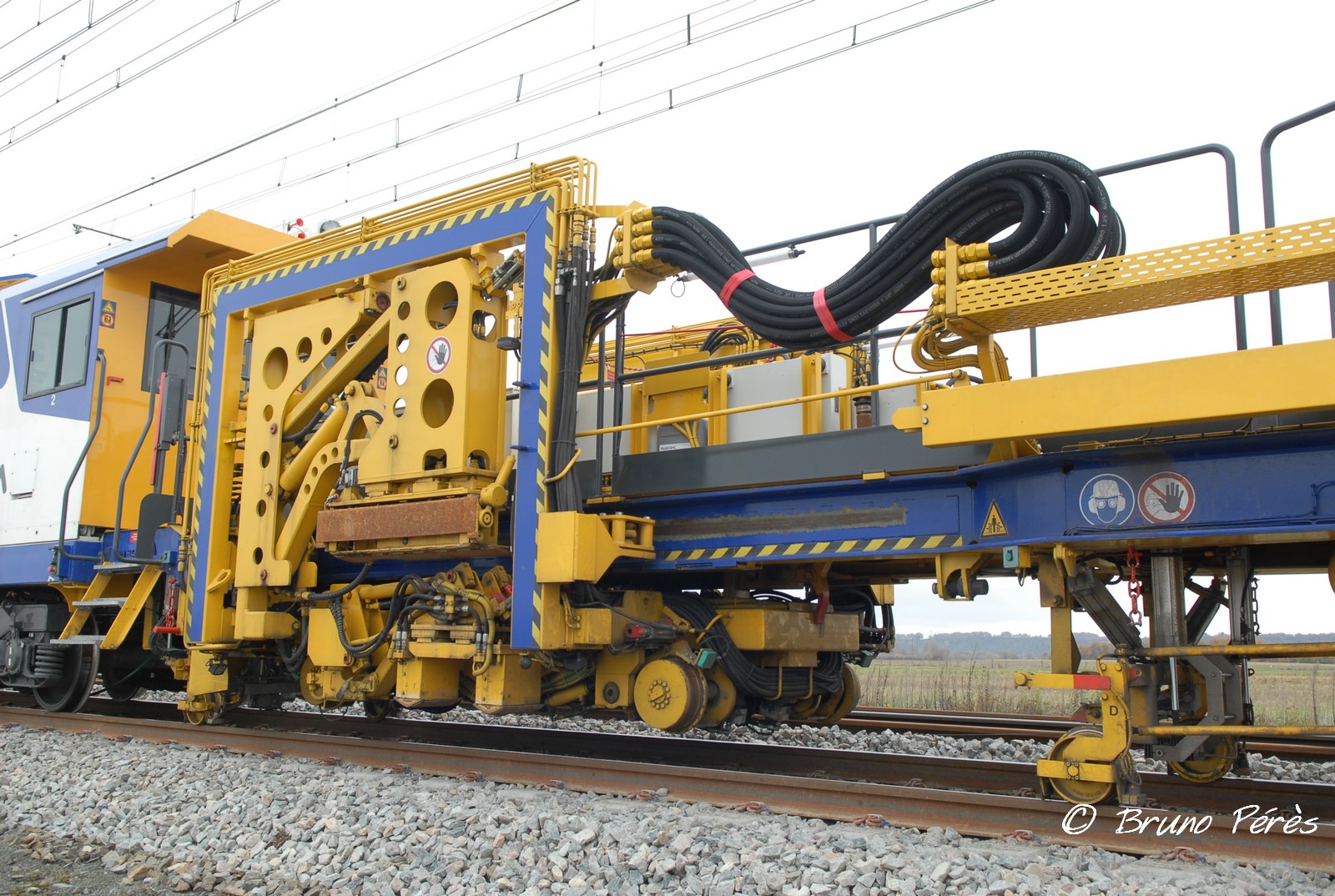 Une nouvelle prise chez matisa, pas encore de numéro B45 avec remorque de stabilisation du ballast et brosse