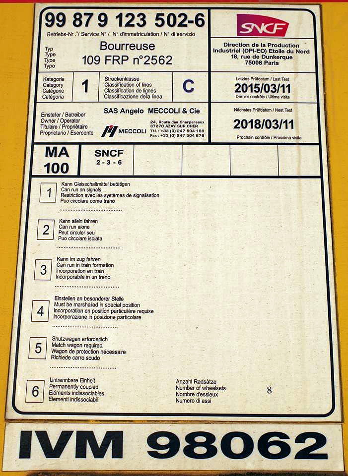 Il s'agit de la 109 FRP dynamic (dynamic car sa partie centrale est un stabilisateur) qui possède également des charrues de régalage. Elle est agréée sous le n° 99 87 9 123 502-6 (ex AS2 MN 128 puis AS2 ATA 0186).