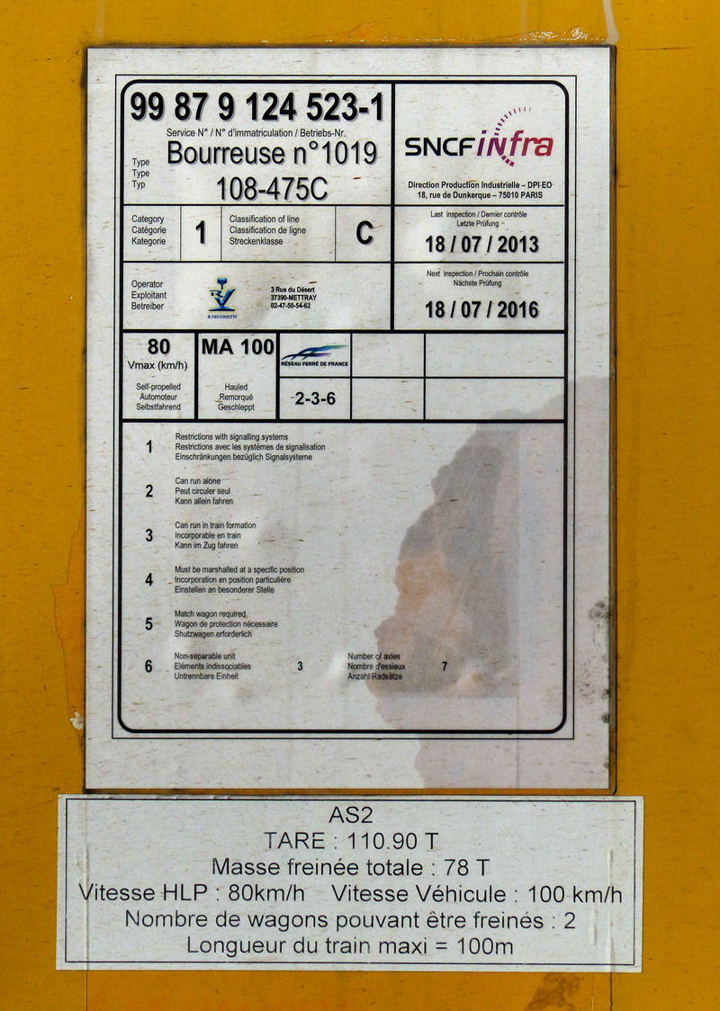 Voici la Bourreuse de retour du chantier de modernisation de la ligne Plouaret-Lannion de fin 2014 (agrément de travail PM 02024)