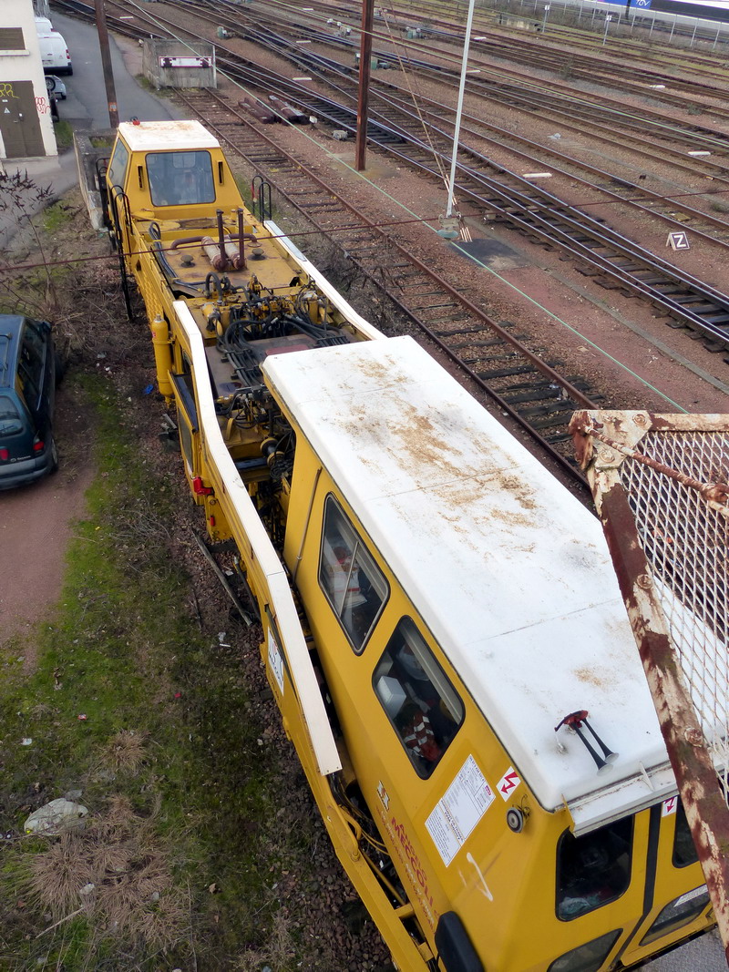 il y a une petite base de travaux Meccoli à Tours avec 4 pelleteuses Rail Route avec la Bourreuse