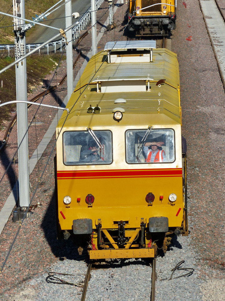 en attente de départ pour les travaux sur la nouvelle jonction provisoire entre la LGV et la SEA au PK 00