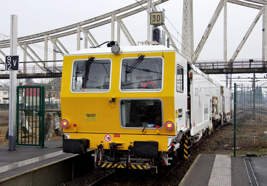 la voici de passage en gare de Mennessis (02) pour un chantier sur la bifurcation de Laon