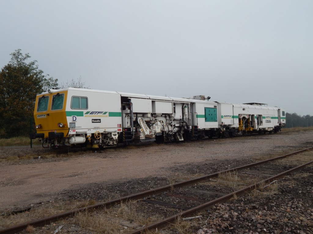 Actuellement sur un chantier près de Vignats, sur l'axe Mézidon-Argentan cette bourreuse toute pimpante de chez ETF.