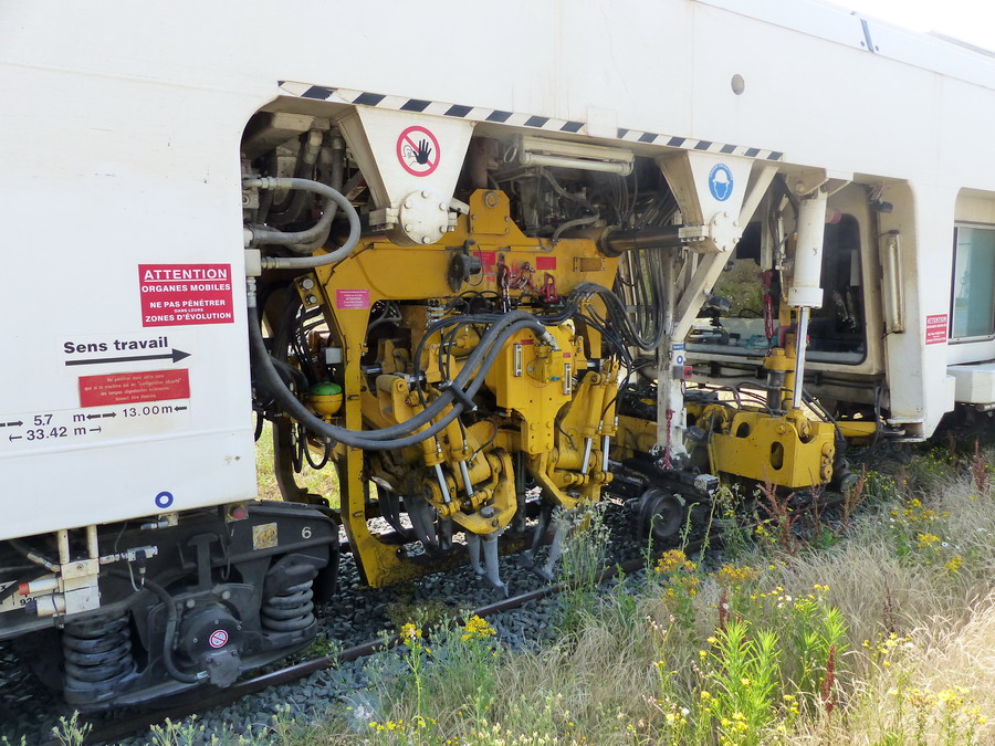 La bourreuse-niveleuse-dresseuse de voie courante et d'appareil de voie 108-32/275 de la société ETF vu à Bourmont le 25 mai 2017 lors de travaux sur la ligne 15.