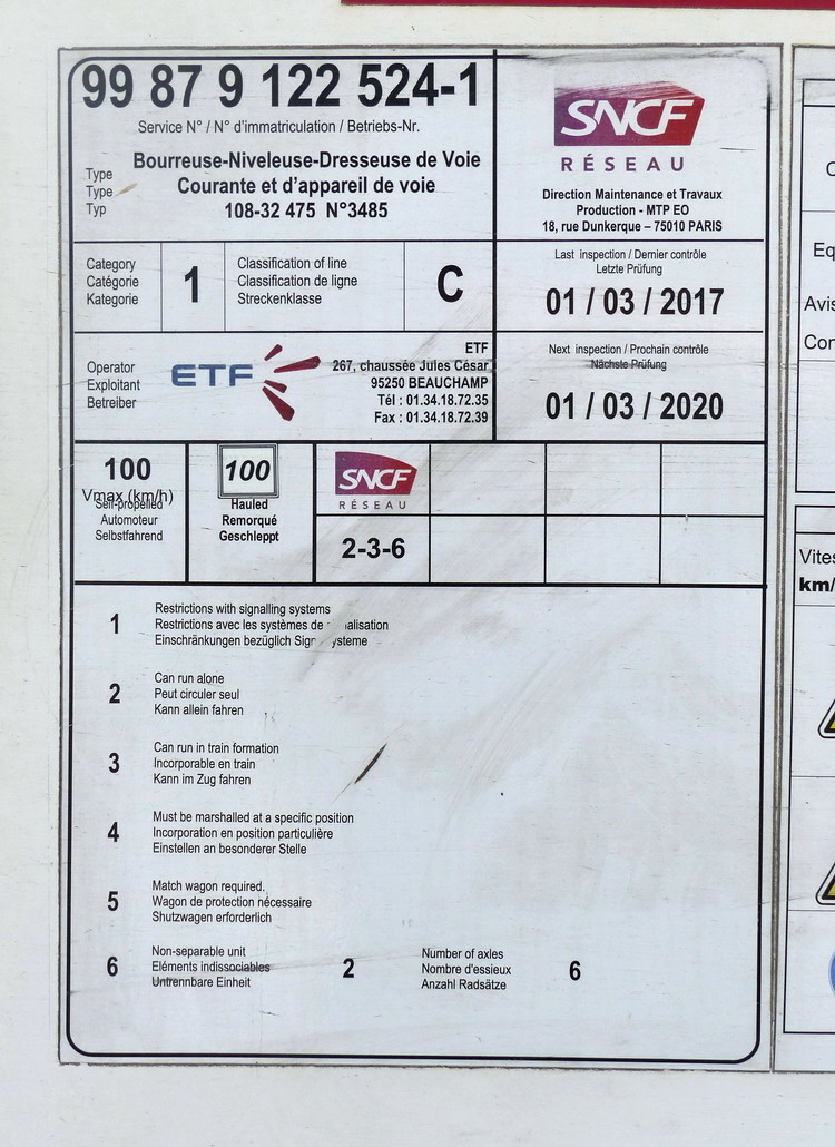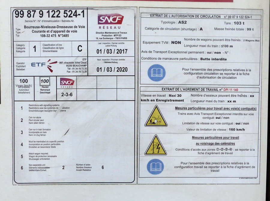 108 32/275 - 99 87 9 122 524-1 - ETF à Saint Pierre des Corps le 30 juin 2019
