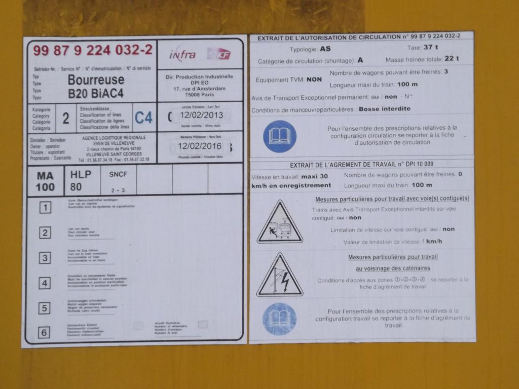Voici une info du 19-05-2015 sur la Bourreuse Matisa n°803 la BI AC 4 - 99 87 9 224 032-2 SNCF-INFRA-PSE