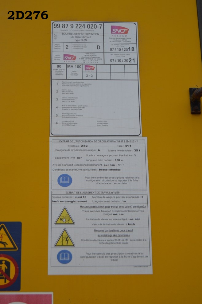 la bourreuse a été achetée par Ing. De Aloe Costruzioni srl, Brescia (Italie); nouveau numéro d'immatriculation 99 87 922 4502-4, codice di identificazione IT-RFI 030608-0.