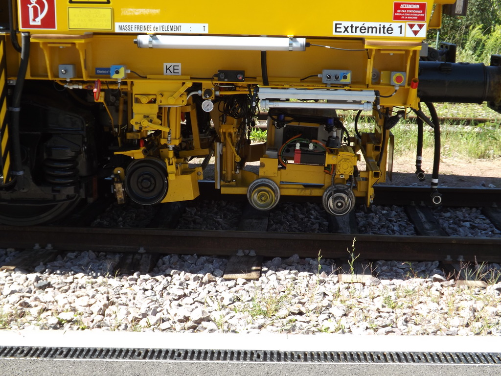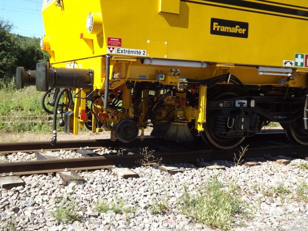 - Brosses tourteaux ; brosses de finition deux par file de rails permettant d'éliminer le ballast resté au niveau des attaches et de l'âme du rail