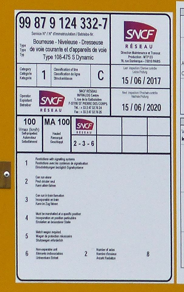 99 87 9 124 332-7 de Plasser & Theurer n°6576 - 2017 pour SNCF RESEAU Infralog Centre Tours point d'attache SPDC (37)