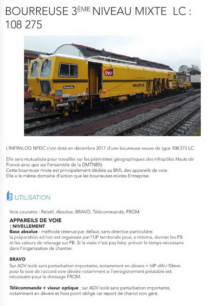 Voici 2 pages du catalogue des engins de l'Infralog Nord Pas de Calais (Haut de France)
