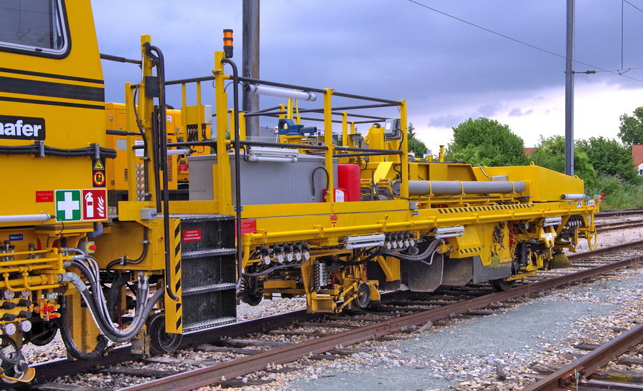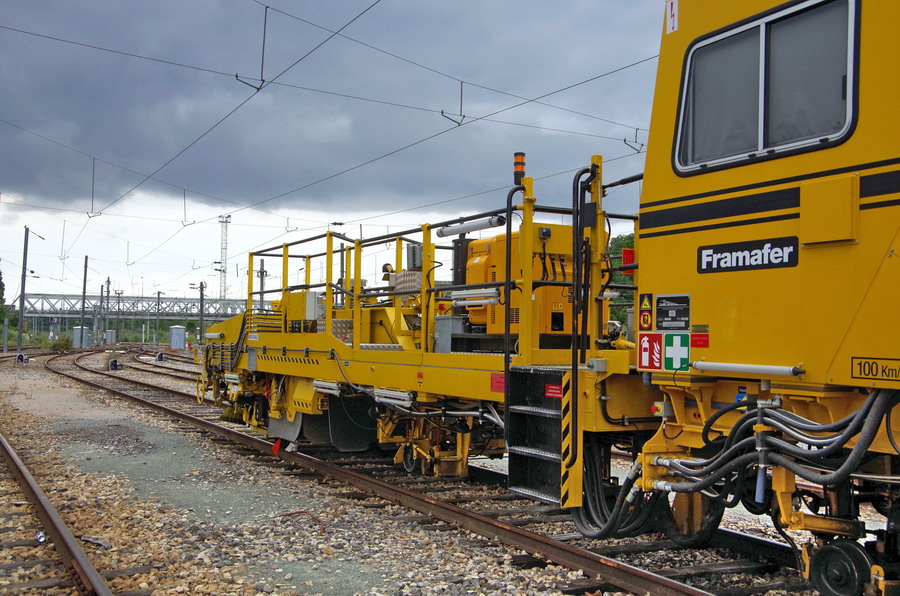 Voici une nouvelle Bourreuse-Niveleuse-Dresseuse Mixte pour appareils de voie sur les ligne classique pour remplacer les B 20 Bi AC4 de MATISA qui ne sont pas adaptées à des appareils de voie sur plancher béton en provenance de Framafer