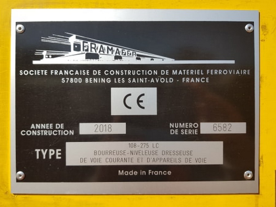 Bourreuse d'appareil se type 108-275 LC de Framafer n°6582 sortie avril 2018 pour SNCF RESEAU de l'INFRAPOLE PARIS EST