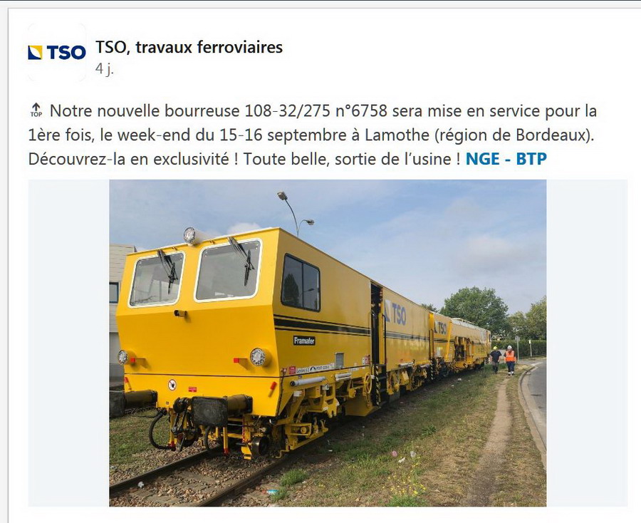 avec une info du 31-08-2018 pour la mise en service à Lamothe dans la région de Bordeaux le week-end du 15 et 16 septembre