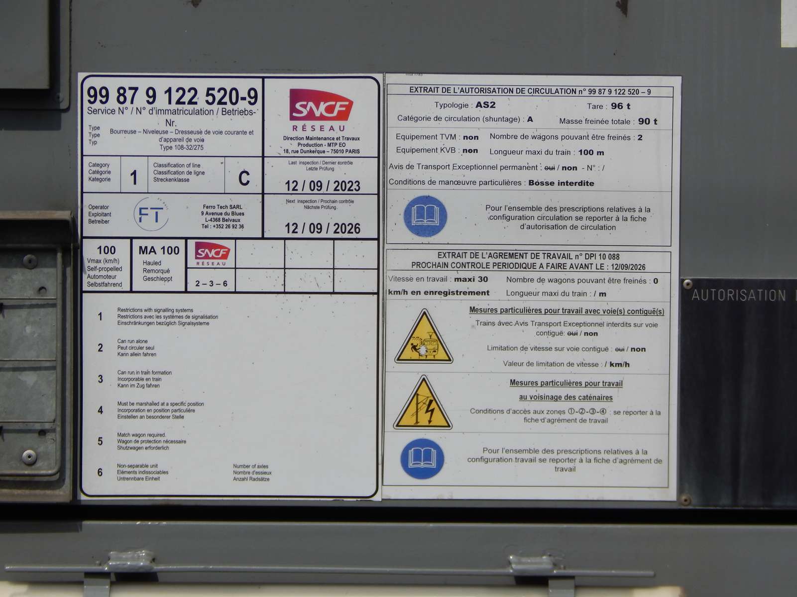 - 108 32/275 - 99 87 9 122 520-9 - TFF Ã Culmont-Chalindrey le 19-09-2018