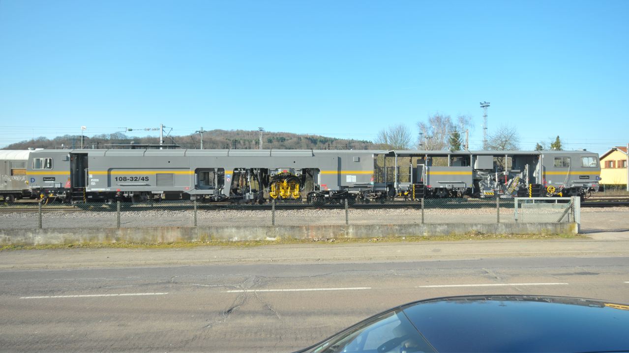 Bourreuse à avancement discontinu ! Si on regarde bien on constate qu'il n'y a pas de satellite d'avancement continu. La bourreuse s'arrête donc bien toutes les deux traverses.