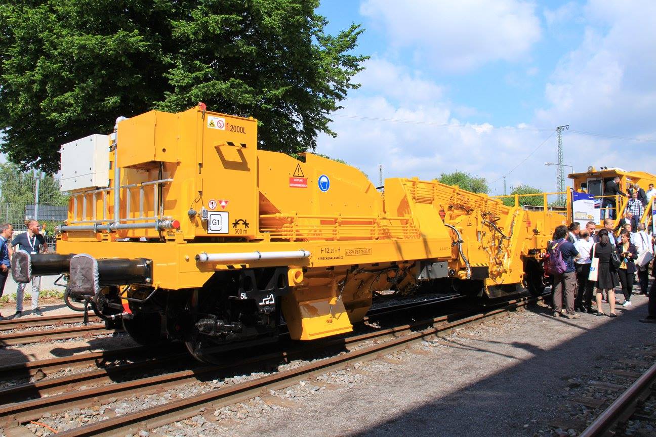 Voici la nouvelle génération de Bourreuse de voies sur le stand de Plasser & Theurer pour l'exposition Ferroviaire IAF Münster 2017 en Allemagne du 30 mai au 01 juin 2017