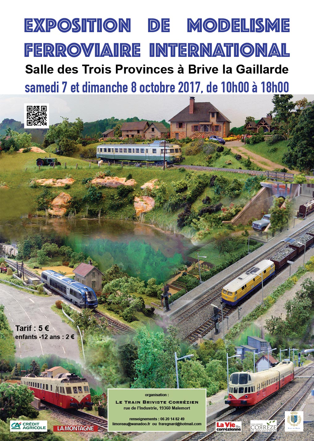 Les 07 & 08 octobre prochains, se tiendra la 3ème édition de l'exposition de modélisme ferroviaire de Brive dans la salle des Trois Provinces, entre les cinémas et le centre Leclerc. Il s'agit d'une grande salle de plus de 2500 m2, accessible aux personnes à mobilité réduite. De très grands parkings se trouvent à proximité immédiate.