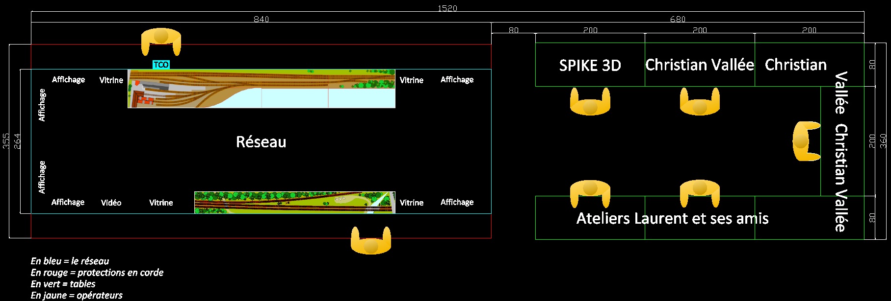 Voici le plan succinct de nos trois stands :