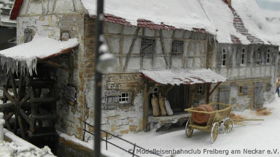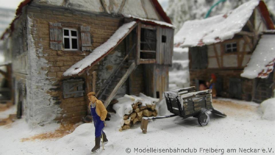 A J-12 nous reprenons le tour d'horizon des 19 réseaux qui seront présentés au Valdahon. Nos amis Allemands du club de Maulbronn ville jumelée avec Valdahon présenteront un réseau HO de 9 mètres de long en voie Marklin reproduisant un décor hivernal et automnal, remarquablement représenté et riches en détails. Chose rare : même le matériel roulant a été modifié pour correspondre à la saison. Ce réseau contient de nombreuses animations dissimulées aux quatre coins du décor, à vous de les trouver ! ! !