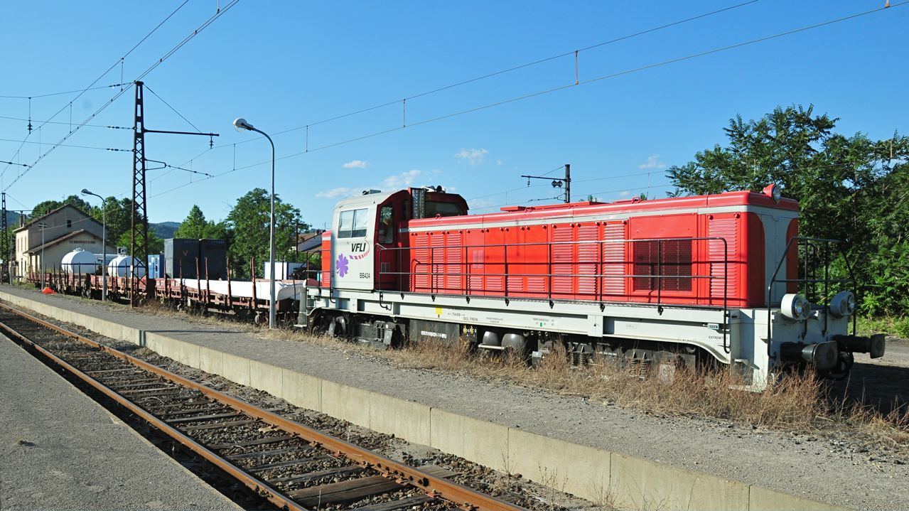 Voici le VFLI BB 424 / 92870000424-7-F-VFLI - en été 2012 devant une rame des travaux.