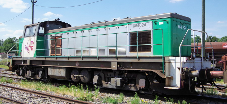 Voici la BB 664624 Infra avec le logo et livrée Fret (ex 63838 mise en service le 29-12-1963) en sortie de dépôt puis la gare le triage