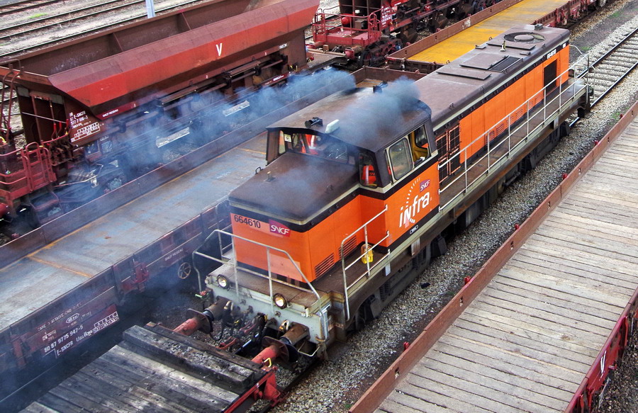 BB 64610 - Infra sur la base de travaux de la gare de Laon le 26 juin 2018