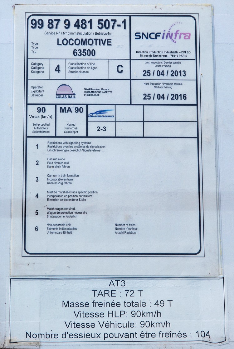 - Numéro actuel : 99 87 9 481 507-1 - Colas Rail F60000 07