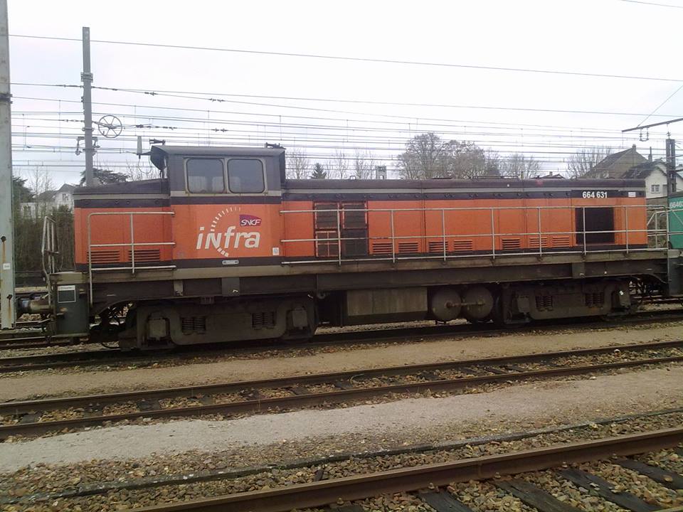 Traction assuré par une 63000 et une pousse de deux machines (664631 Arzens et 664635 ex fret) dont voici les photos