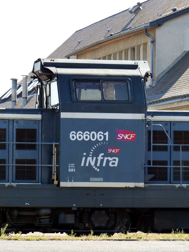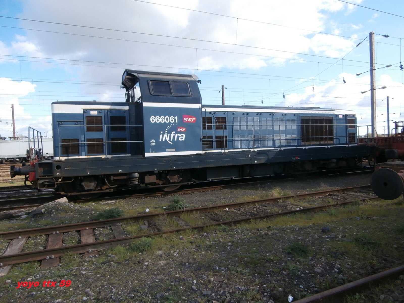 Pour info voici la 666061 avec la 669201 et une rame de Trémies sur la zone de garage des rames Infra