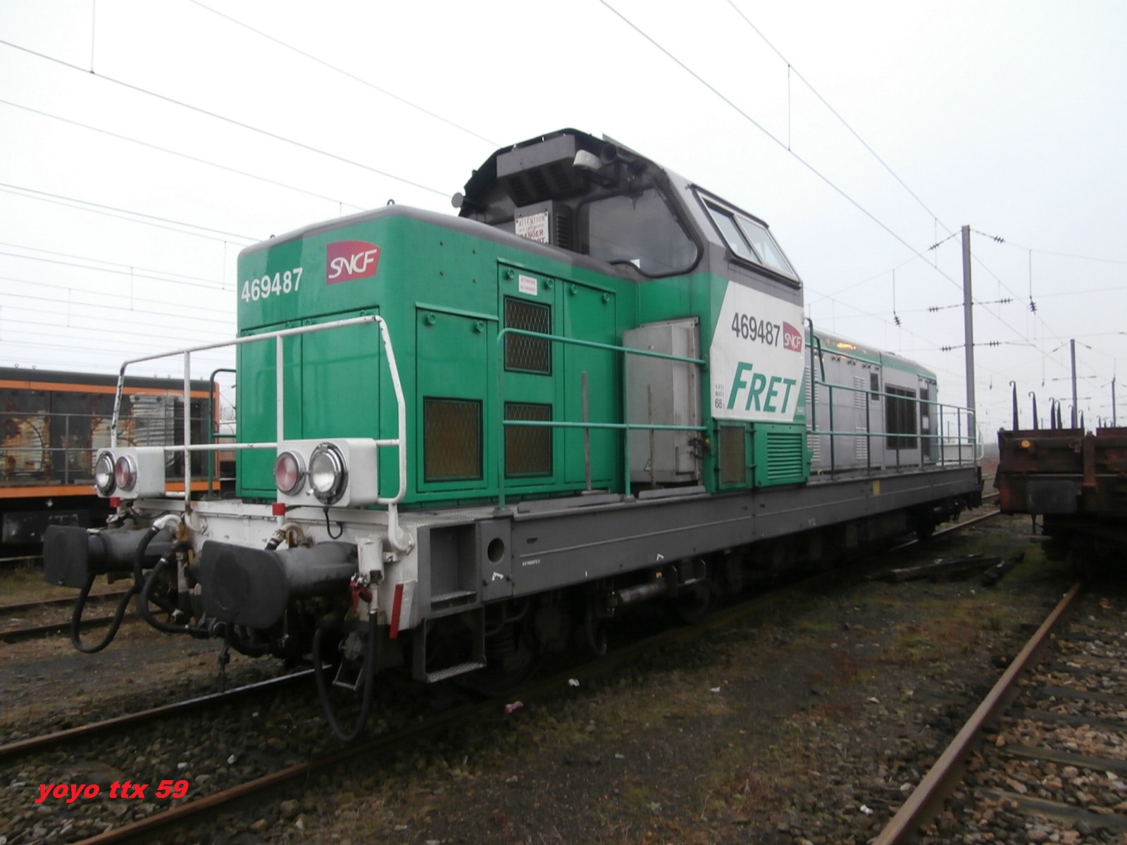 En voici une petite nouvelle pour le forum .Il s'agit de la BB 69487 en livrée FRET mais affectée a l'INFRA ( vérification faite sur le site " trains du Sud Ouest " ) .Voici les photos du petit tour du propriétaire a Lille Délivrance ce week end :A suivre :